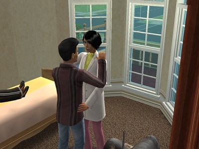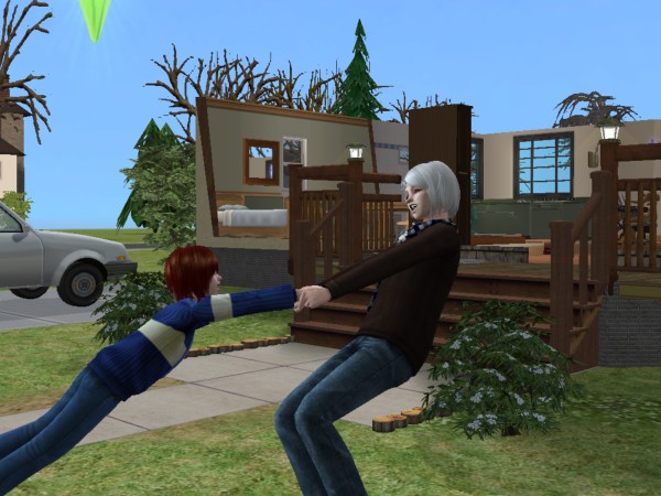 避難することを覚えたのはいいですが、ちょっと火元から離れるとか、別の部屋に避難するではなく家の外まで出て行った挙句にすっかり忘れてしまうなんて、何事も行き過ぎてるシム達がとても面白いです(笑)