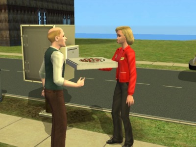 ピザって注文しないと届かないものですよね?いや、グリークハウスでたまにピザもって帰ってくることありましたけども、それ以外ではないですよね。MOD入れた覚えもないし。いままで遭遇しなかっただけで、シムはフリーウィルでも注文するようになったんですか?? そんなそぶりなかったけどなぁ。