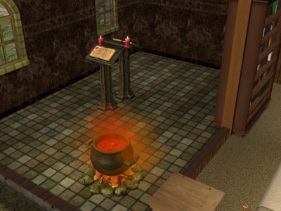 魔法書の文字は赤だし釜の中身は毒々しい真っ赤な液体がマグマのように煮立ってます。いかにも妖しい悪の魔法使いっぽい(笑)