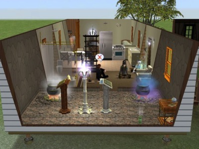 最初は外にこの釜とか出しちゃって共同魔法作業スペースみたいなの作ってもいいかと思ってたんですが、一度退居させるんで部屋に置いといて売却されちゃっても困るかとやめました。でも同じ属性なら誰のだろうと使えるみたいなんで1個くらい試してみてもよかったかな。