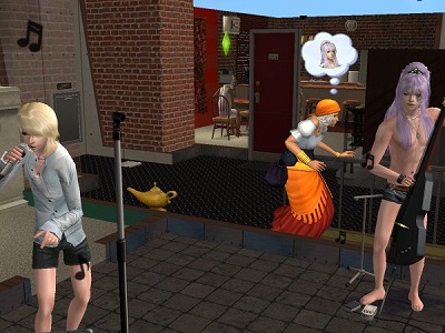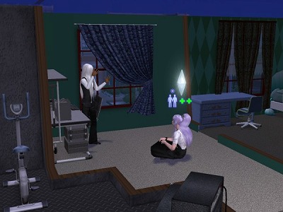 彼も仕事があって時間がくれば勝手に出勤していくのですが、帰ってくるとなぜかパラメータMAXで気分爽快で帰ってきます。そのほかにも「用事を済ます」とかいうアイコンを出して出かけて行き、帰ってくると全回復。稀に楽器を弾き続けてて出かけられず体力真っ赤でベッドへ入るんですが、使うのは上にチラッと写ってる青いおにーさんのベッド。食事もほとんどとりません。全部外で済ませてきちゃうみたいですね。