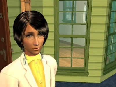 デフォでかけてた緑のメガネがまた意味わからん!と常々思ってたのでこれもとっかえて。最初は普通に透明レンズのメガネにするつもりだったんですけどなんとなくレンズの形が気に入ってサングラスに。これまた私のイメージというか偏見というか、駆け出しの貧乏画家さんは画材だのキャンパスだのに囲まれたちょっと薄暗いアトリエで日がな一日篭ってるイメージなんで、普段から明るすぎるのは苦手で日中はサングラスが必需品、とか勝手に設定して見る(笑)