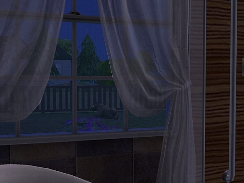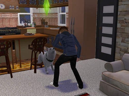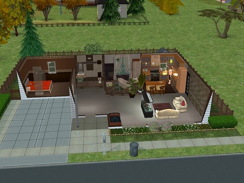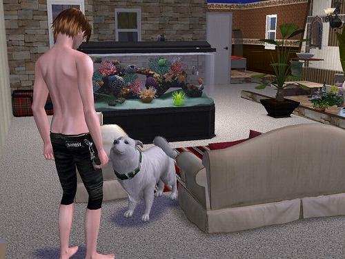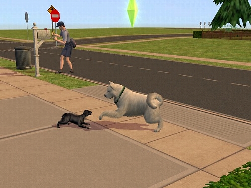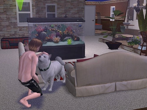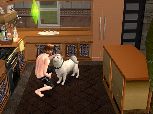 以前のデータでちょろっと紹介した猫2匹に水槽に鳥かご1個な動物に囲まれたシムを作って、前庭でチケットマシーン使ったたまり場で稼いで暮らそう計画を少しやってたんですが、ほとんど堪能しないまま終わっちゃったので、今度は「犬と暮らそう」がテーマです。とりあえずわんこの仕草、動作の細かさがすばらしいと噂なので、じっくりみてみようかとはじめました。