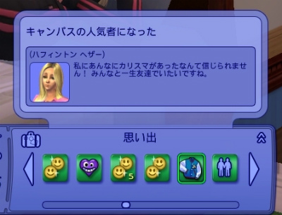別のシムでキャンパスの人気者になりたーいという願望を出してるシムがちょうど良くいたのでぱちり。