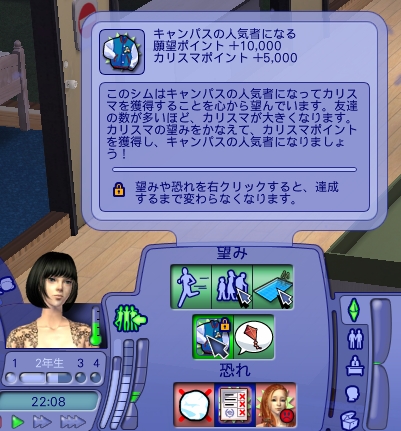 彼女は名声願望だし、確かメンバーを増やしていけるかみたいなこともかいてあったので、ヘザーちゃんのおまけ的に新しいシムにはしょっちゅう出会うしパーティーも結構やるのでお友達も増えるしで、がんがん願望叶ってるんですが、やっぱり友人が多いと付くっぽいかなぁ。
