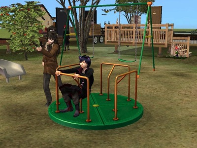 この遊具、大人は遊べないみたいで唯一のteenだった弟君が興味を示してくれなかったので遊んでるところを見たことなかったんですが、気が付いたら弟君が遊具にのってて、モデル世帯の兄ちゃんが遊具を回転させてたんですね。