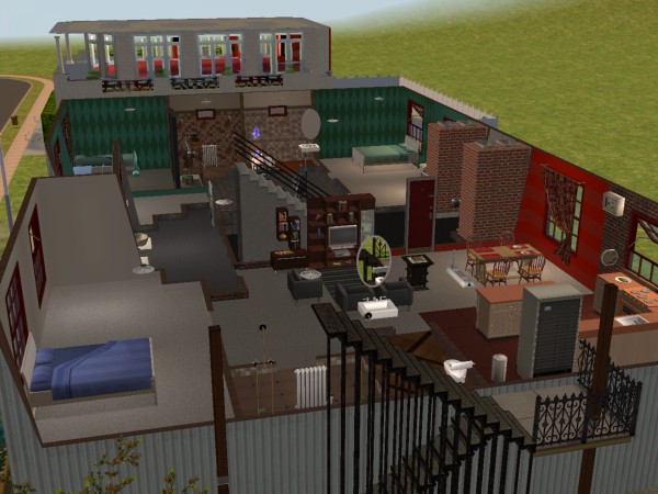 普通の豆腐一軒家と変わらない規模の部屋ですがアパートだと週3,000シムリオン。一軒家だとお金を増やしてからじゃないとプレイできないようなサイズなのにいきなり入居できるのはいいですよねvそのかわり家賃高いのでがんばって働かないとすぐそこをつきますけど・・・。
