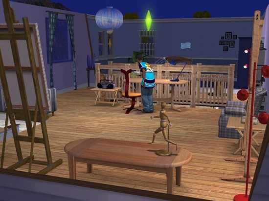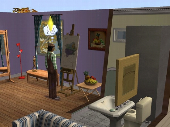 ↑ 今回は髪型も服装もデフォルトを使用。画家といったらベレー帽?という単純な発想から髪型が決まり、貧乏画家なんだからちょっと汚れた服よね?って思いつつ、フリータイムかなんかで追加されたペンキで汚れた服とか彼のためにあるような気がしたのでこれに決まりv