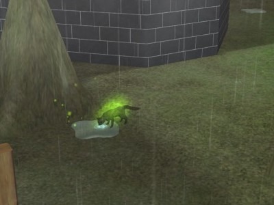 ご覧のようについた時からこの城は雨模様だったんですが、そこにできた水溜りの水をペロペロ舐めてるんです!もうほんっとかわいいです。癒されます。