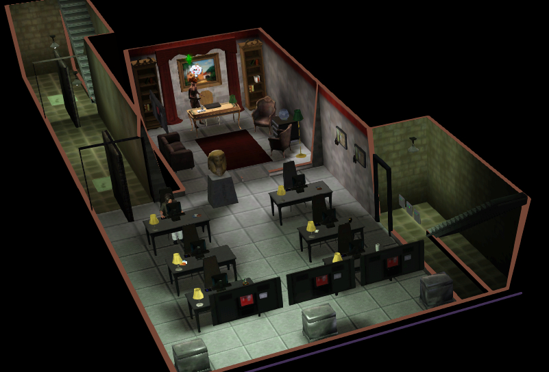 奥にある一際豪華な部屋に設置されたパソコンでしばしハッキング作業をしましょう。